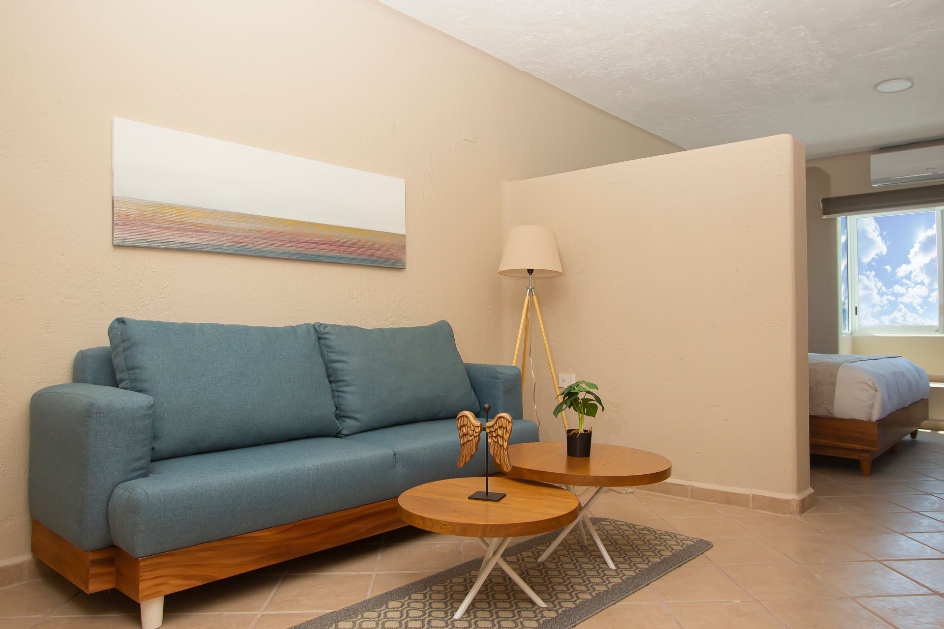 1 King bed, living room, air conditioning, cable TV, ironing kit upon request, microwave oven, coffee maker, minibar with cost, private bathroom and shower, bathroom kit. Partial sea view.